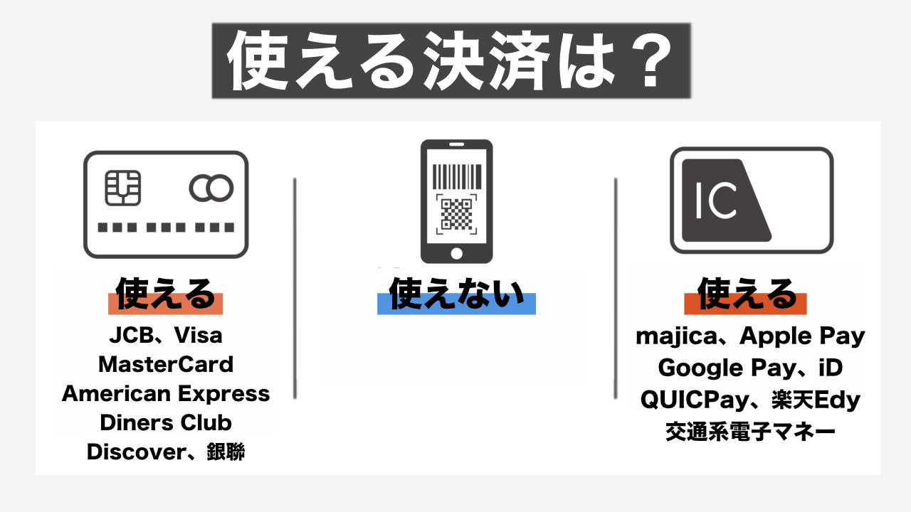 ただし、電子マネーに関しては店舗によって使用できる種類が異なるので注意しよう。