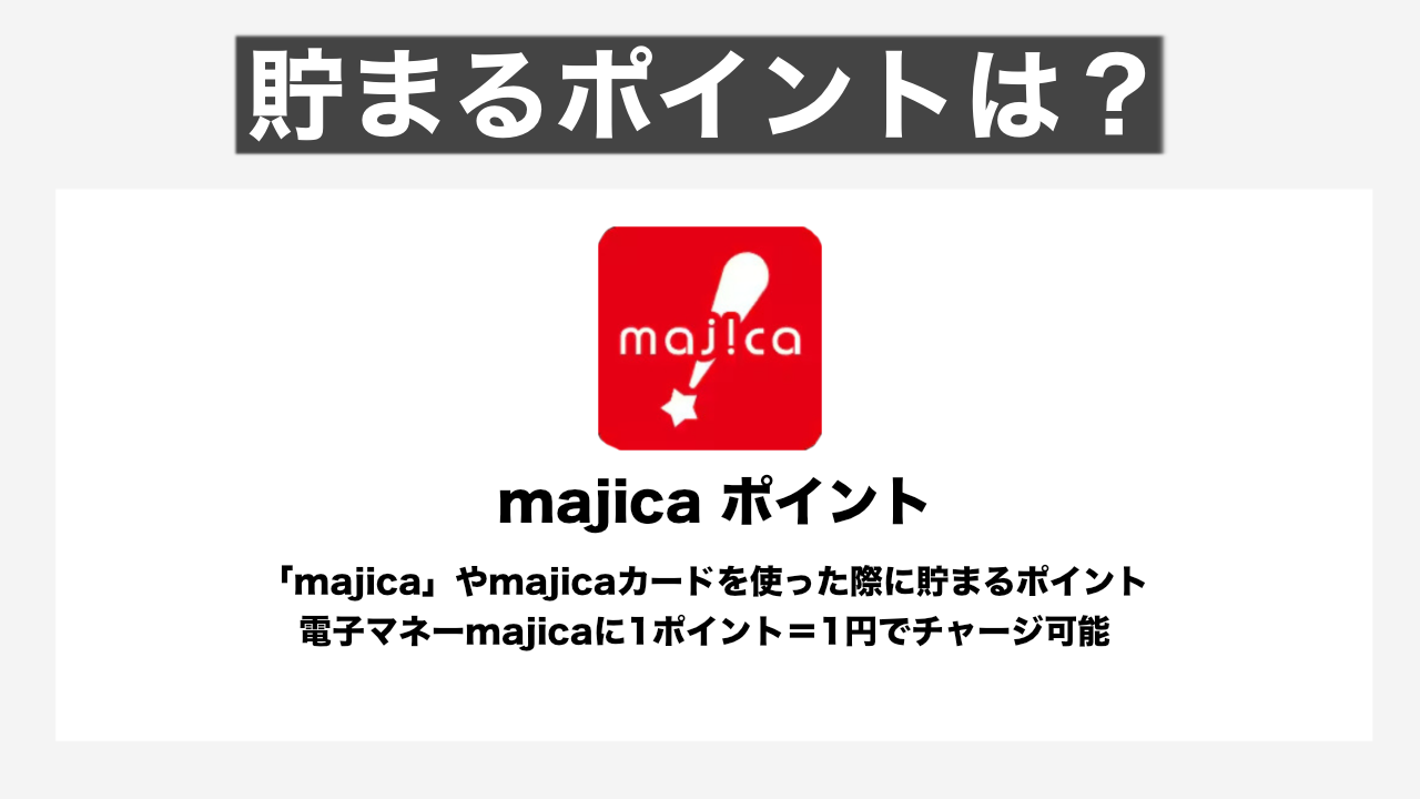 majicaポイントは電子マネー「majica」やmajicaカードを使った際に貯まるポイント。