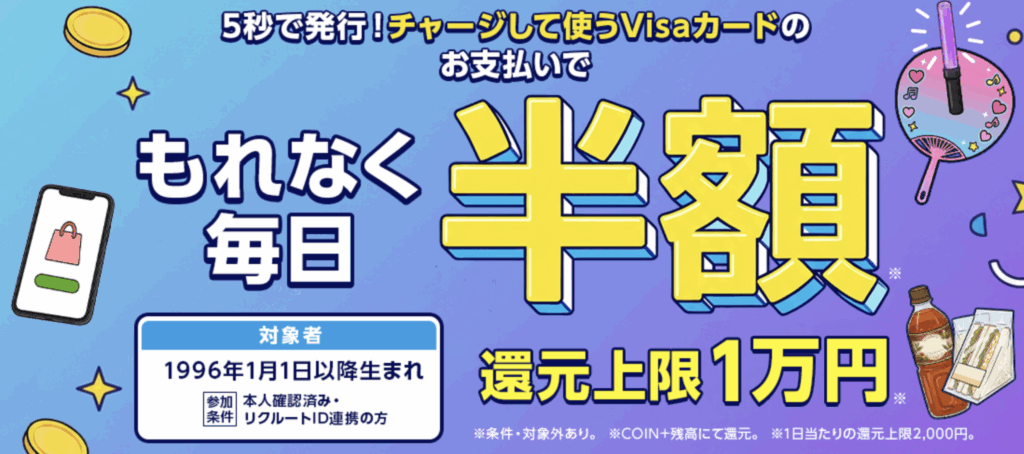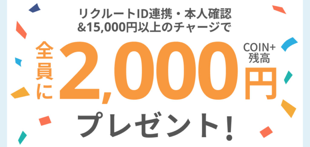 リクルートID連携の上で15,000円以上チャージで2,000円分の残高プレゼント
