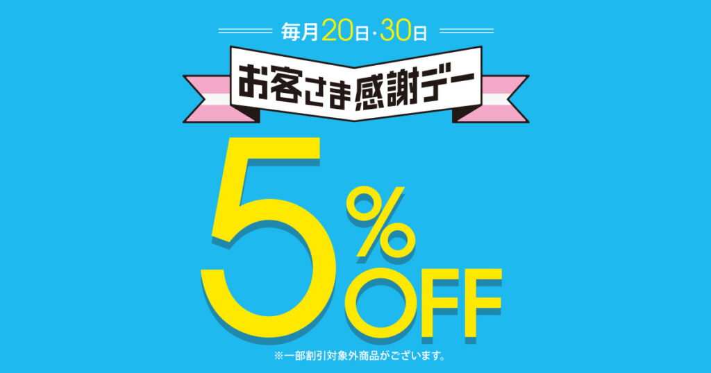 イオンでは毎月20日と30日にお客様感謝デーが行われており、この期間は5%OFFで買い物することができる。