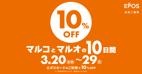 マルイとモディでは対象期間中にエポスカードで決済をすると10%OFFで買い物ができる「マルコとマルオの10日間」というキャンペーンが偶に行われている。