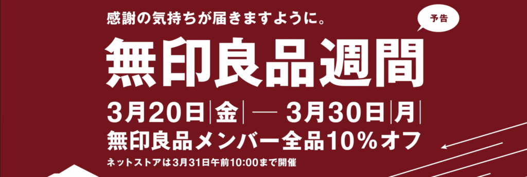 無印良品週間→2026年3月20日〜3月30日